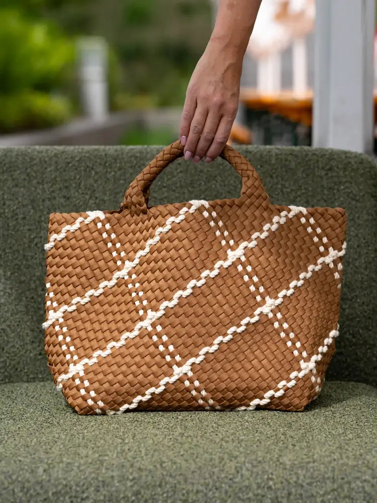 Stor flettet veske med lommer fra The Vibe, kr 4000.