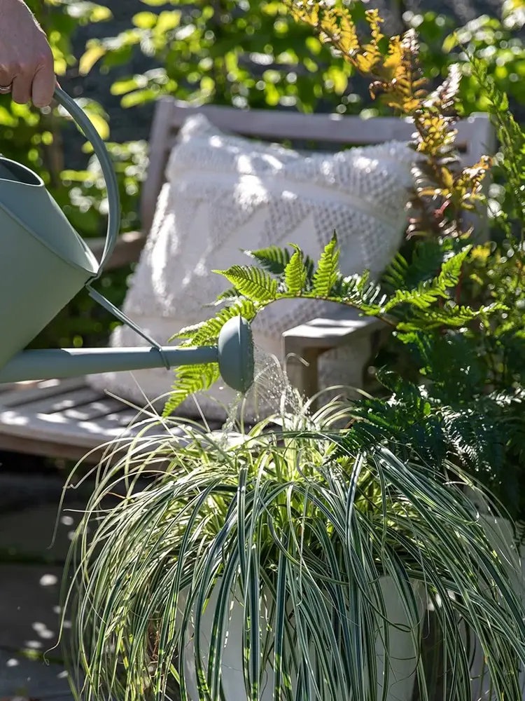 Plantene trekker ut så mye vann som de trenger selv fra ferievannerene, og skal du ikke være borte så alt for lenge, kan du komme hjem til en fortsatt blomstrende og fin uteplass.