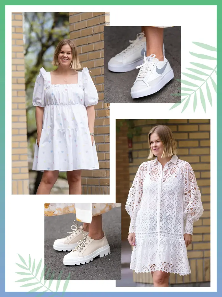 - En hvit sommerkjole gis ekstra personlighet med dette skovalget.