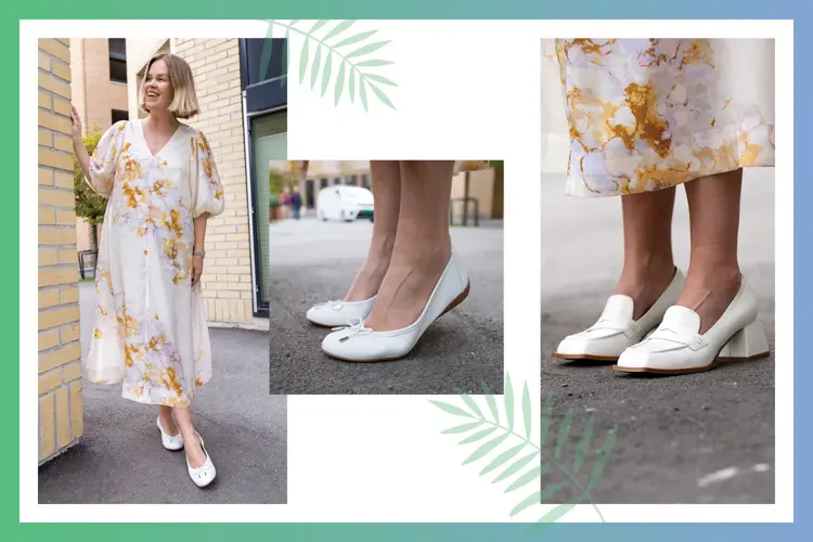 - Et helhvitt antrekk er så fint om sommeren. Bruk disse skoene til en hvit omslagskjole for eksempel.