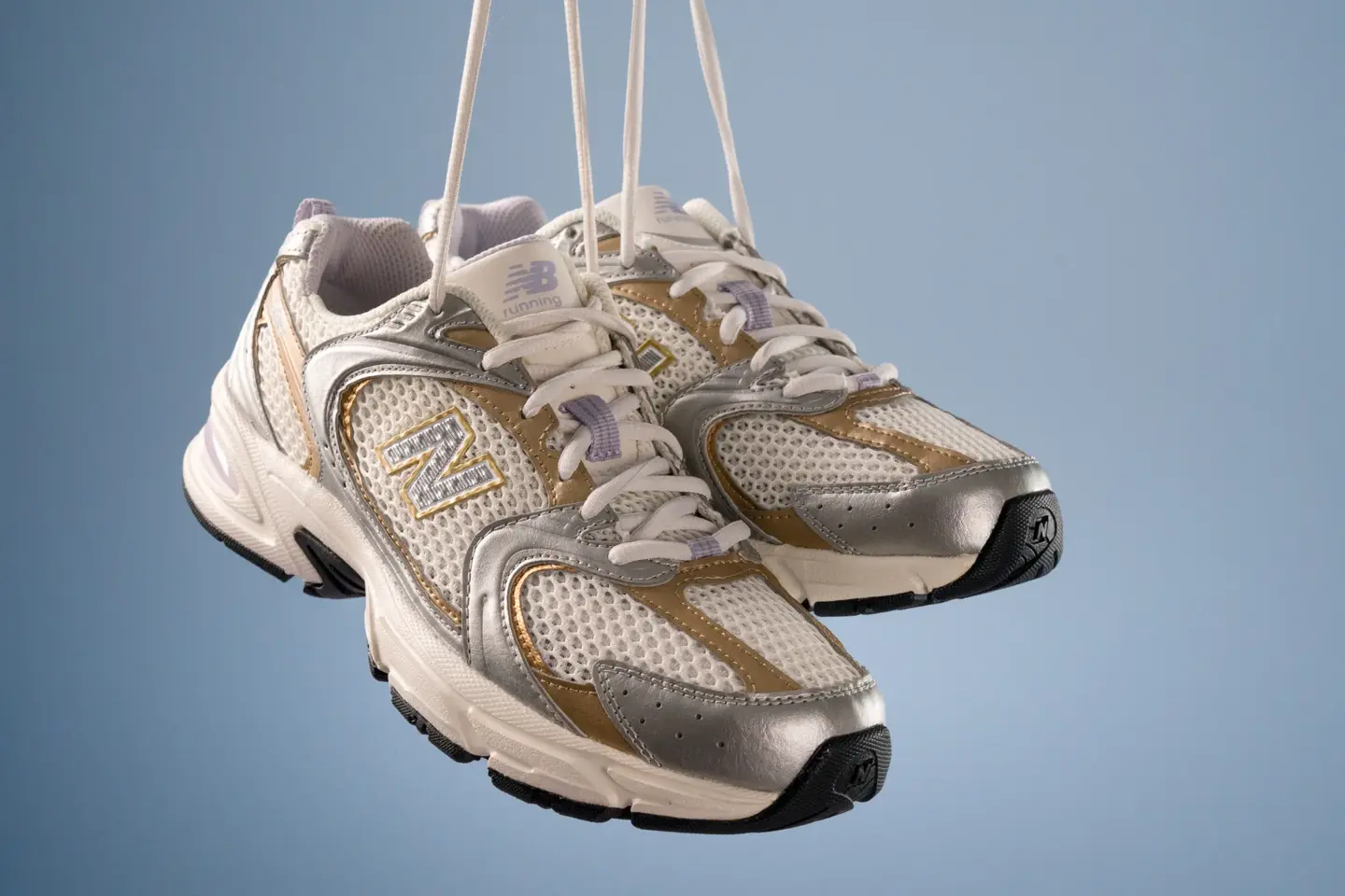 Hvite, beige og sølvsneakers fra New Balance hos Shoe Gallery 1399,-