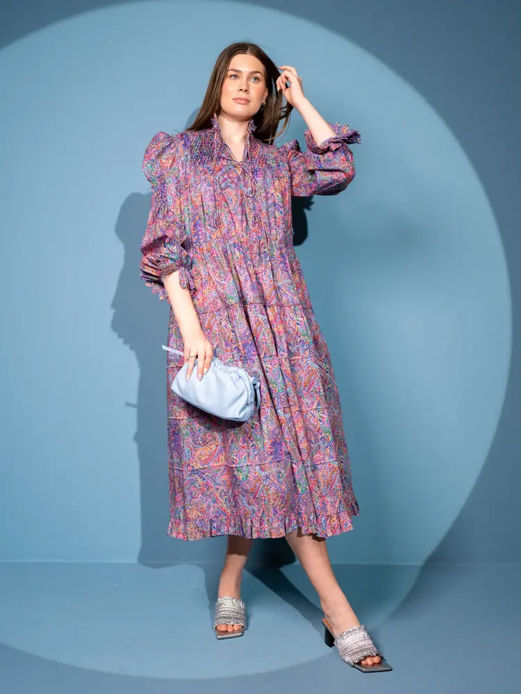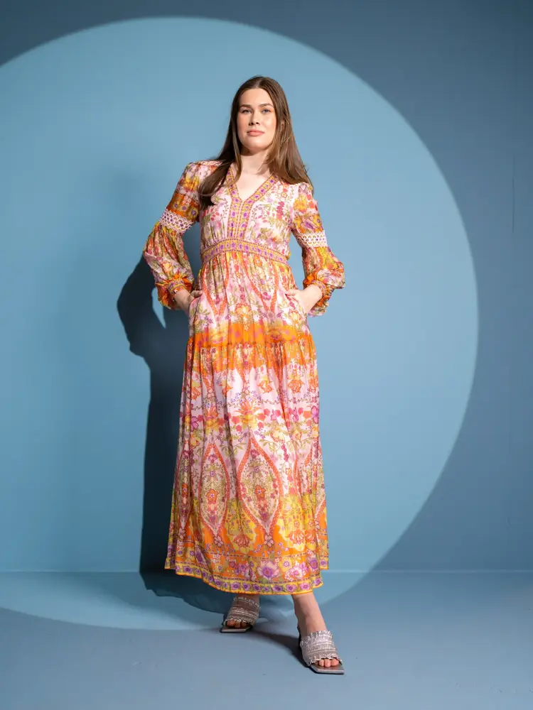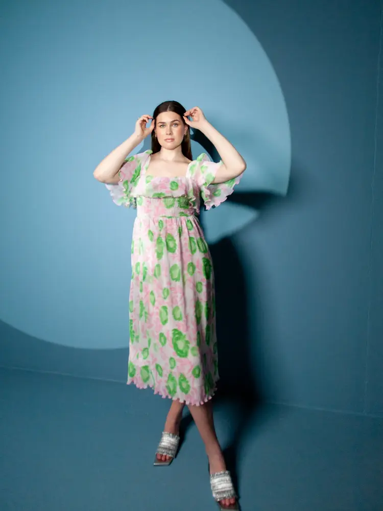 Mønstrete kjoler er livlige og fantastisk fine til sommerbryllup. En flott miks av ulike farger gir et livlig uttrykk som passer alle aldre, og kan med et par styling-varianter få svært forskjellige uttrykk. Understrek mønsterleken med iøynefallende øredobber, gjerne i farger, eller la øredobbene stramme opp totalen i solid sølv eller gull med organiske og sterke former. Åpne sandaler er mer bohemsk enn pumps, mens en stram clutch gir en dæsj eleganse.