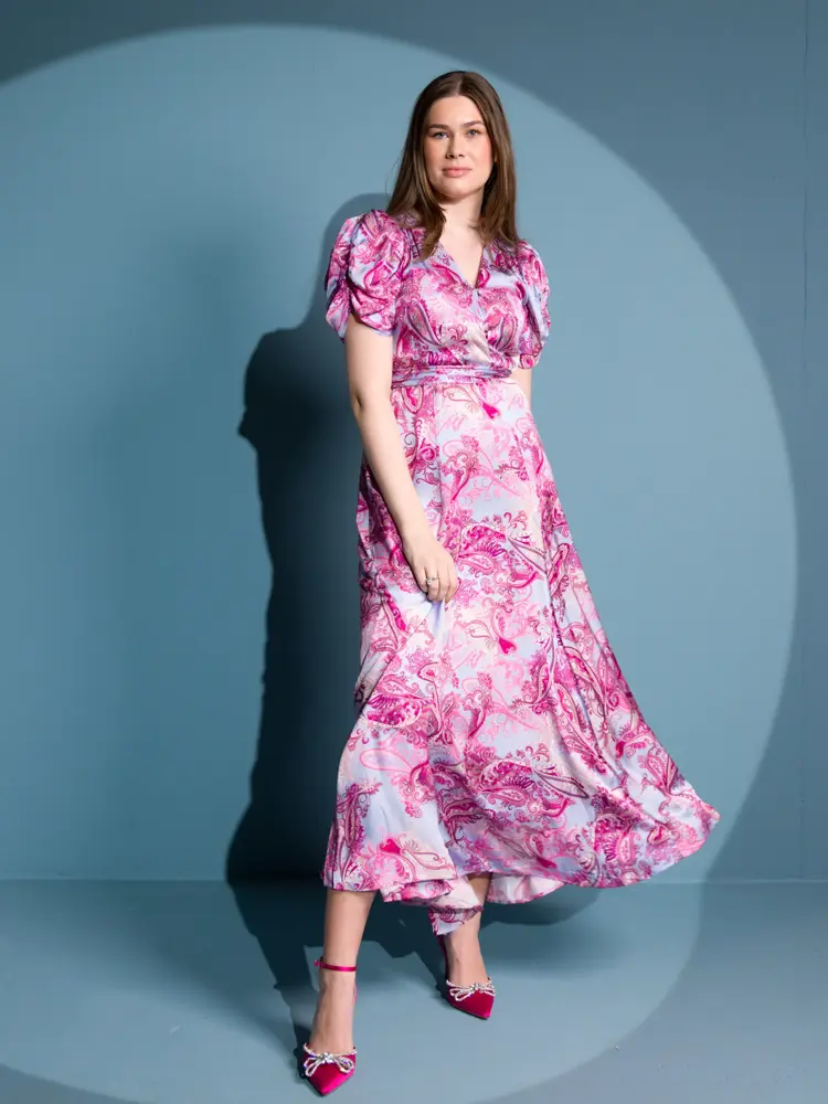 Rosa, fersken, lavendel og lilla er mye brukt i bryllup. Og ikke uten grunn. Disse fargene er vakre til solbrun hud og utstråler feminitet. Velg fasong ut fra hva som passer din kropp og humør. En løs og luftig kjole er et statement i seg selv, og blir enda kulere med en statement-veske til. Høye krager er vakkert til oppsatt hår, mens bohemske og maksimalistiske mønstre er klassikere som aldri går av moten. Kjoler med tilhørende belter gir det lille ekstra til kjolen. Gule, oransje og ferskentoner er flott til hvitt tilbehør, eller hva med å tilføre litt sølv eller gull på veske eller skotøy? Trendy og råfint. Ensfargede kjoler i en knallfarge er personlig en favoritt, og her er det bare å gå for favorittfargen din. En gul kjole er lekker til tilbehør i sølv, mens knall rosa er yndig og søtt til beige sandaler med hæl.