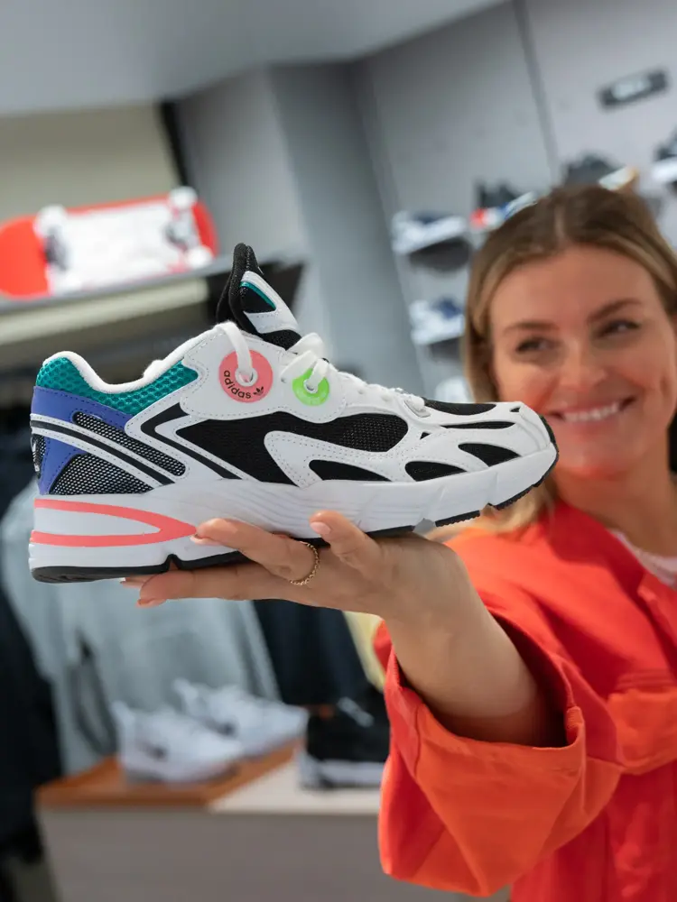Junkyard har sneakersene Janka digger, chunky, bold og i knalle farger -jeg skal helst ha de som stikker seg litt ut. Og så må jeg støtte mannen min som jobber i Adidas - her var det mange fine topper sier hun.
