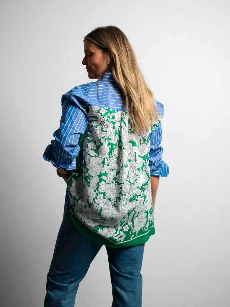 Hos De Fem Hjørner er kjoleutvalget bredere enn hos de fleste. Janka falt derimot for et to-delt sett fra Max Mara Weekend i striper med et spennende mønster bak på skjorten. - Et antrekk du kan bruke sammen eller hver for seg til for eksempel en kul jeans sier Janka.
