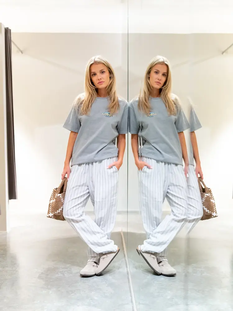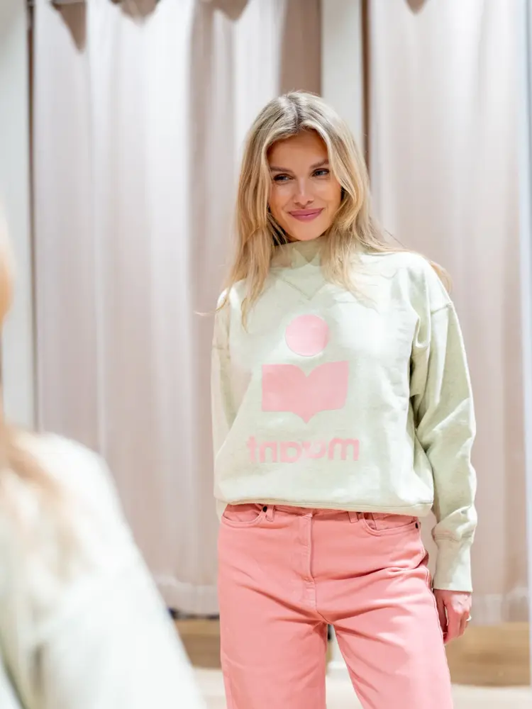 College ganser i farger og jeans, litt oversized - akkurat slik hun liker det. Hos The Vibe finner du merker som bla Holzweiler, Blanca, Meotine, Notes du nord, Rodebjer, Tomorrow Denim, Ulla Johnson og mange fler!