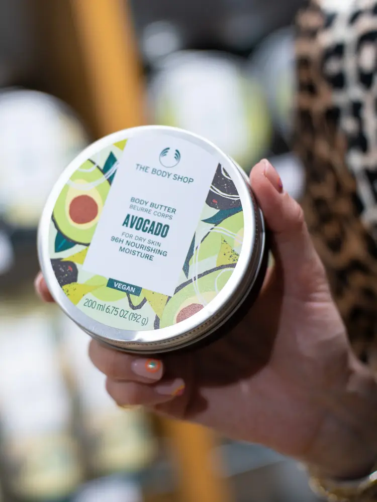 "Har du tørr hud?" spør plutselig Marianne og drar oss med inn på The Body Shop. Avocado kremen er et must i hennes daglige hudpleie rutine.