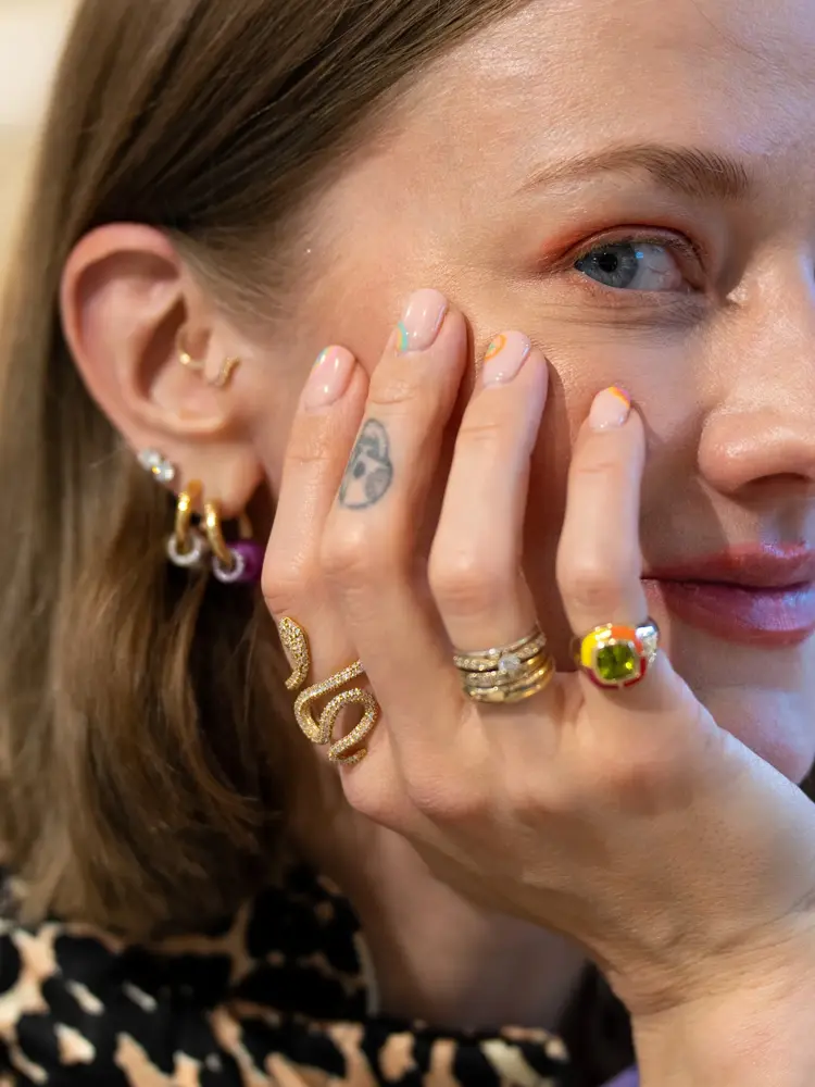 Oooh la la! Marianne med fantastiske ringer på hånden. David-Andersen har et unikt utvalg av egne og internasjonale merkevarer, og deres lidenskap for design og smykker kommer godt til syne gjennom deres egenutviklede kolleksjoner