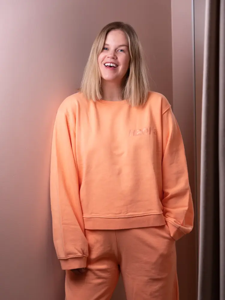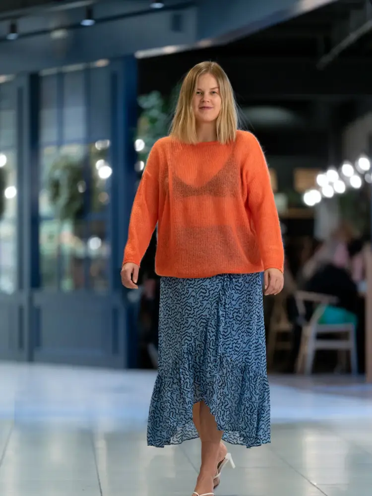 Oransje joggedress fra H20 Fagerholt fra the Vibe 1399,- pr del // Oransje strikkegenser fra Dear Dharma 1299,- Skjørt fra Second Female 1299,- Alt fra heltCOCO
