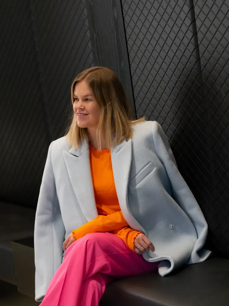 Hold basen i antrekket fargerik og varm, slik som her med oransje og rosa i skjønn forening, og ton ned totalinntrykket med en kald pastelltone. En blazer, skjorte eller jakke gjør susen.