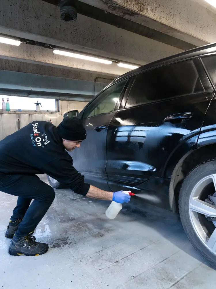 Hos Handz On bruker de maskin og kvalitets produkter som gjør at bilen blir skinnende ren og klar for en ny sesong på veien.