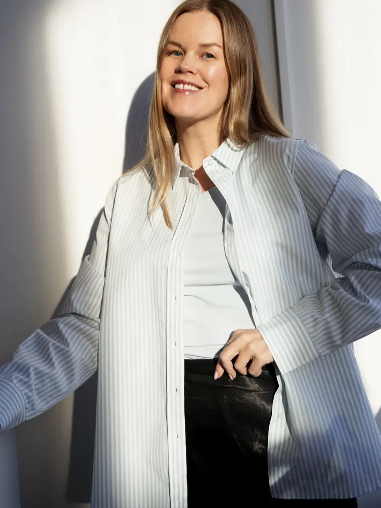 I fjor utførte Julie Josephine en del større investeringer i merkevaren, blant annet en re-branding med ny logo. I år har de åpnet en vakker butikk på Sandvika storsenter, der du kan finne favoritter som deres myke t-skjorter i ulike styles, pene dressbukser (for eksempel den perfekte hvite buksen til våren) og skjorten du like gjerne bruker til silkeskjørt, som til shorts, tights eller slenger over en kjole.