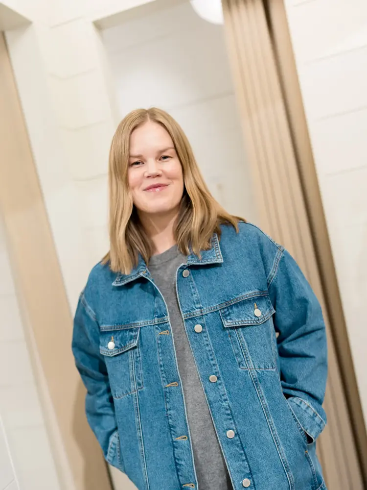 Denimjakke og vår hører sammen. Enda en stayer, enda en jakke som alltid er aktuell. Et must i garderoben, og denne henter du fram igjen og igjen. Vi heier på skjørt og loafers med sokker i til.