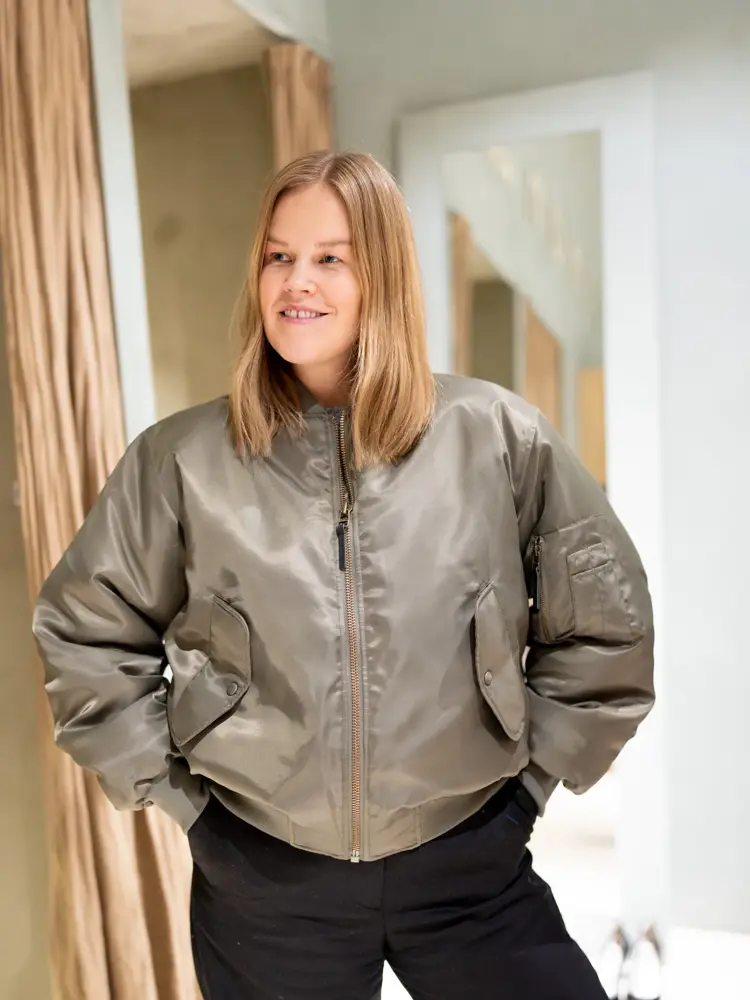 Bomber-jakken er brennheit! Vi sier det én gang til - den er virkelig brennheit! Kanskje det mest trendy ytterplagget i vår, og du får den både kort-kort, oversized og romslig samt pyntet med mykere materialer. Det gir en mengde styling-muligheter, og med en bomber-jakke er det moro å prøve seg fram: en romslig jakke til miniskjørt, en kort-kort bomber til en baggy bukse med høyt liv eller en pyntet bomber til en silkekjole.