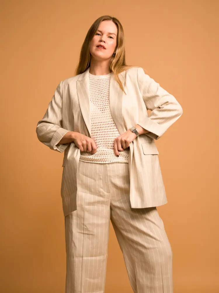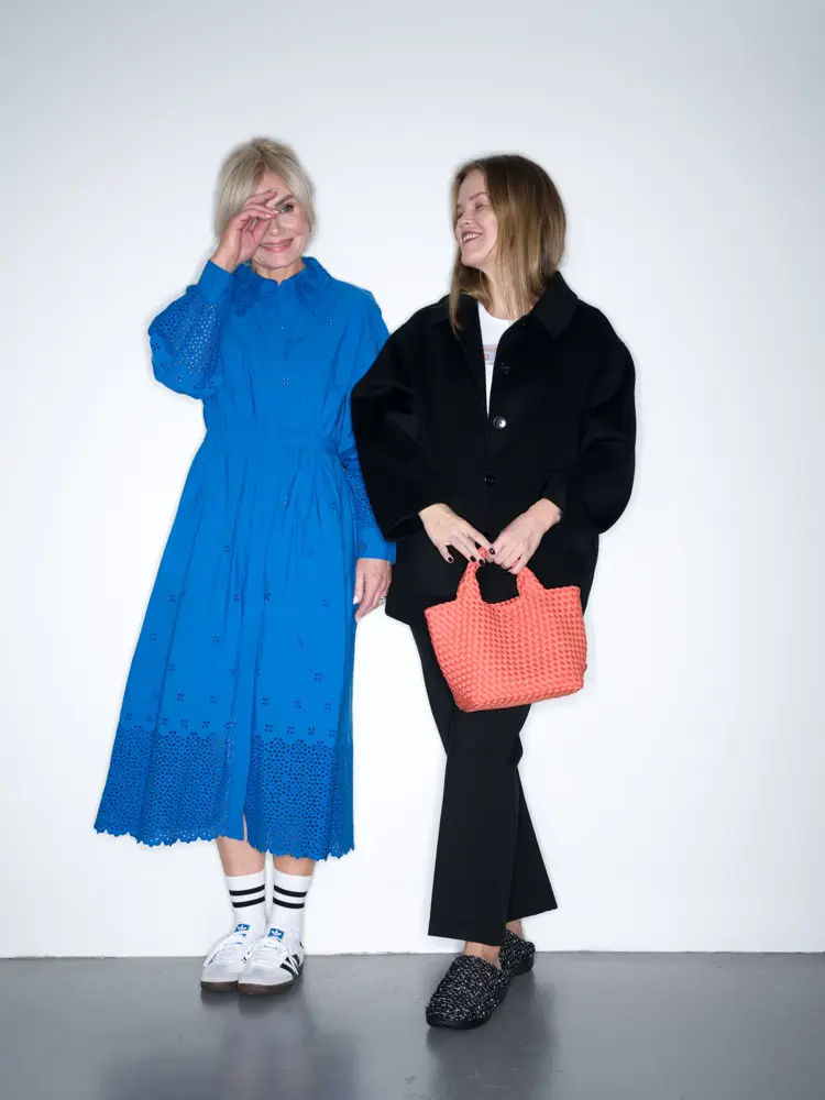 Jakke 4999,- t-shirt 799,- bukse 1999,- alt fra Line of Oslo | Høyre: Jakke 999,- skjørt 899,- alt fra Bik Bok. Sko Mango 699,-