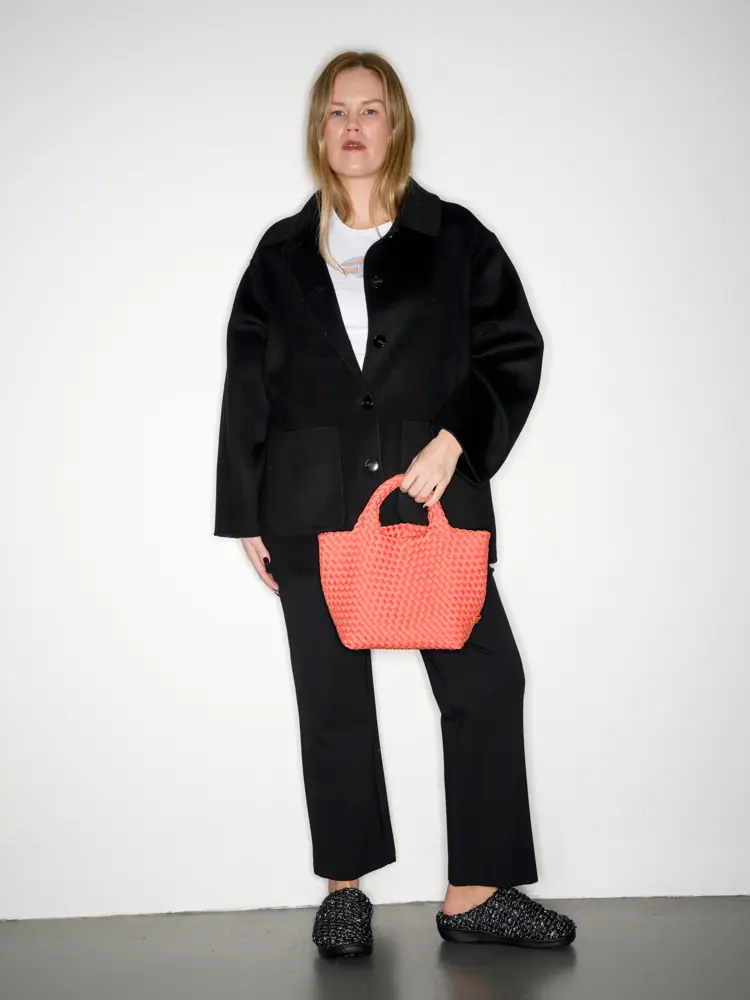 Skjortejakke 4500,- bukse 1700,- t-shirt 1000,- veske 3300,- slip-in-sneakers 1100,- alt fra Mark + Brandy