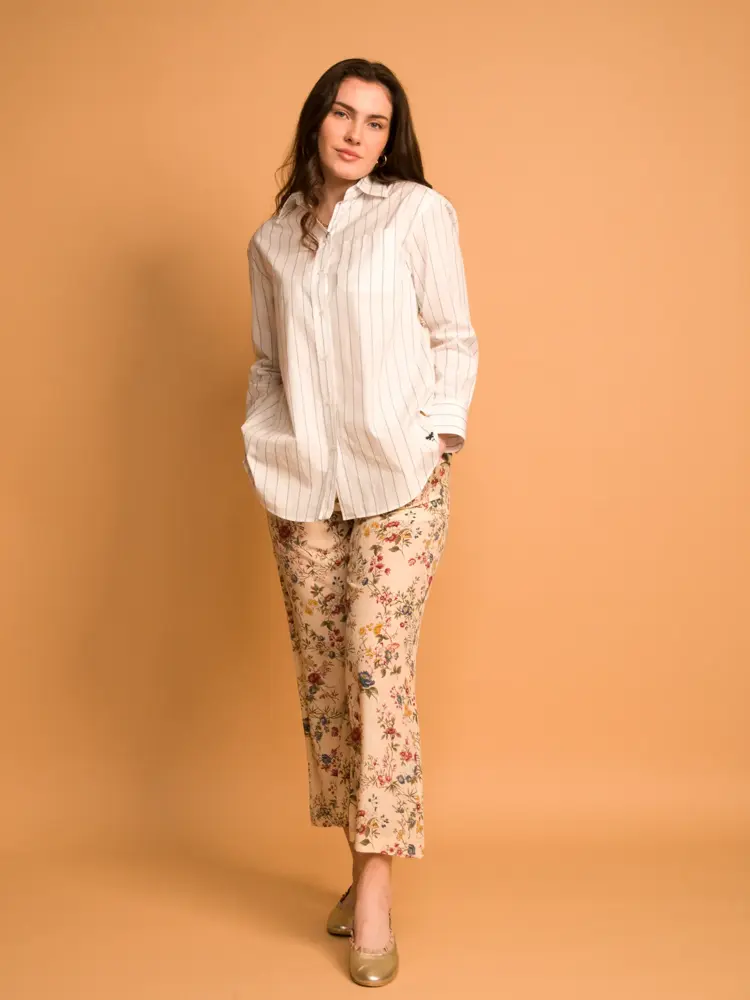 Stripete genser 1100,- bukse 3000,- begge fra Kiman Woman. Veske 17050,- boots 3800,- jakke 6400,- alt fra 4Women