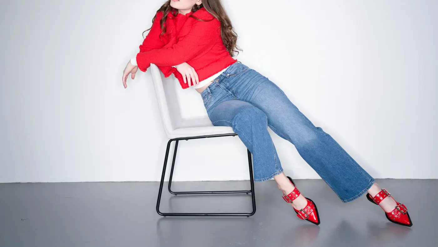 Øverst venstre: Mango Rød jakke 1199,- Veske 599,- singlet 299 ,- ballerinas 699,- Satengskjørt 599,- alt fra Mango | Bede: Rød jakke Mango 1199,- Jeans Vero Moda 499,- røde sko Ganni 3195,-
