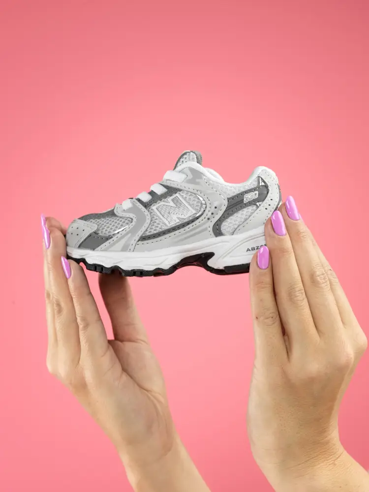 De aller minste trenger også gode sko! Vi lot oss sjarmere av en mini-variant av den klassiske grå New Balance-sneakers, og en grønn high top-sneaker fra Puma.
