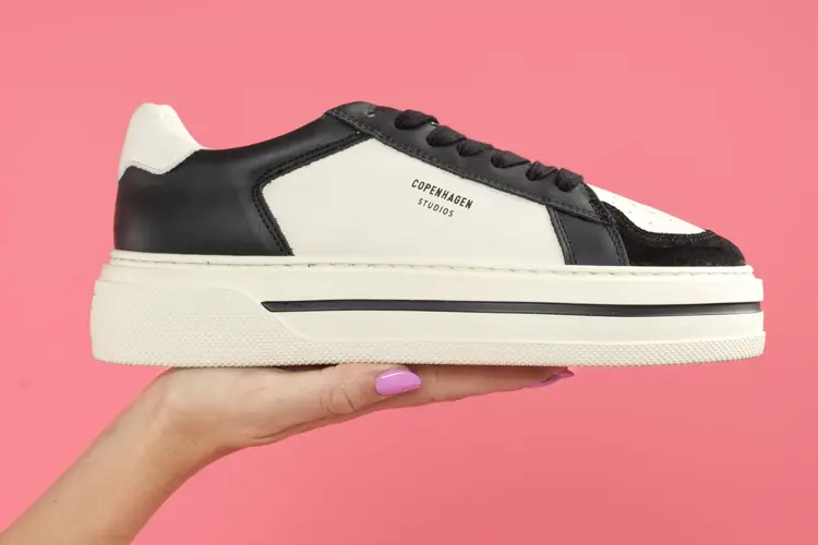 Hvite og svarte sneakers fra Copenhagen Studios hos The Vibe, kr 2449.