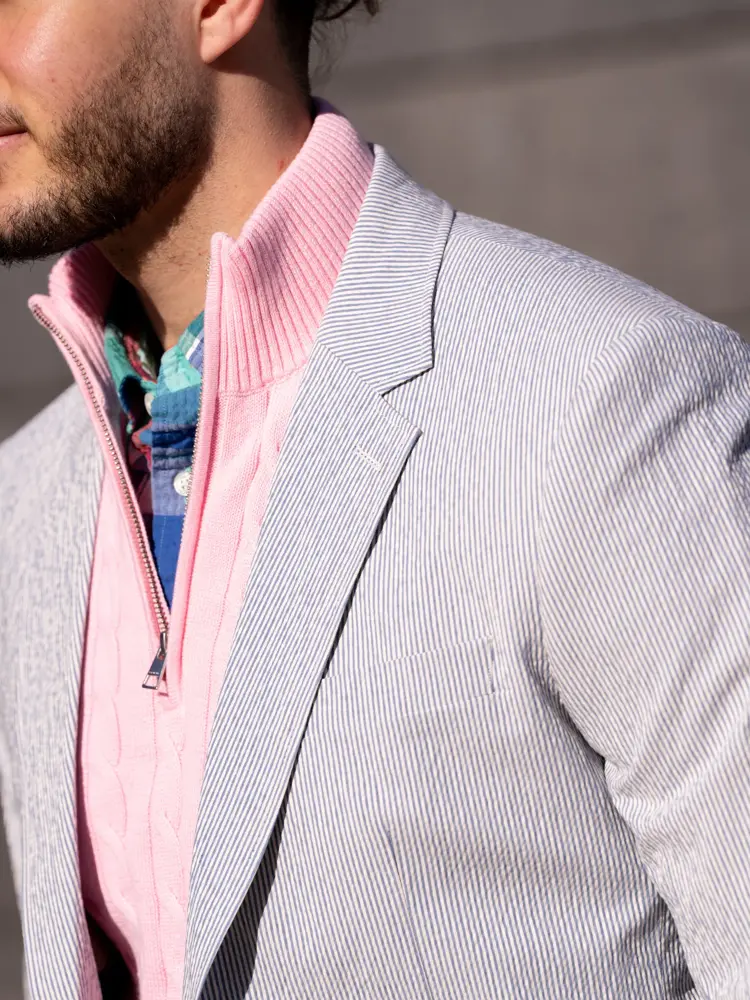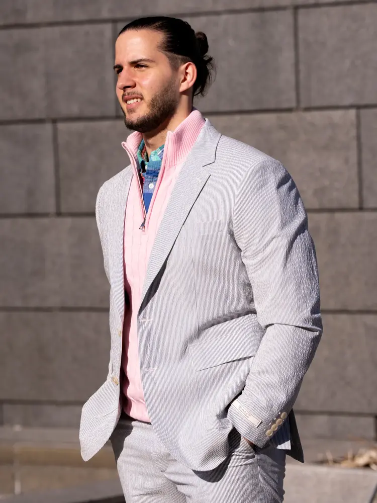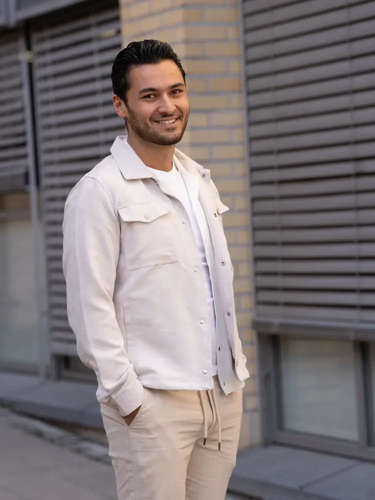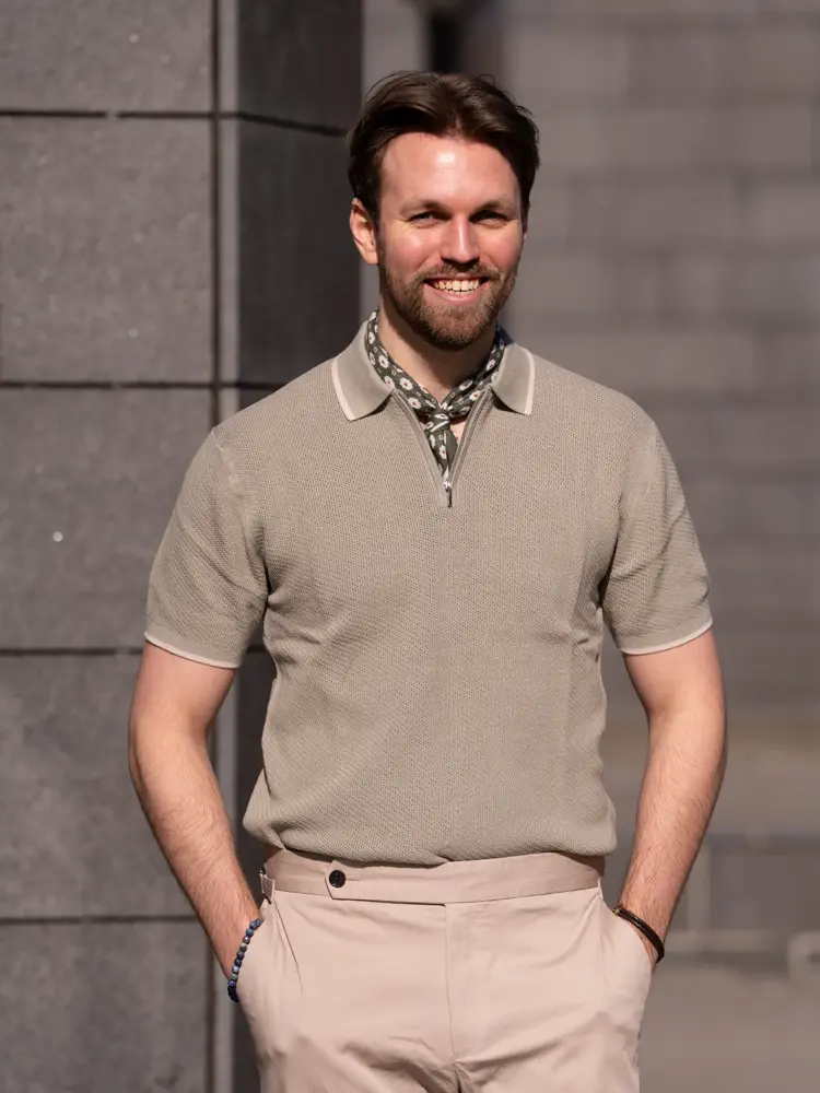 Denne våren handler herremote også om å kle seg pent – uten at det føles stivt. En lett blazer over en halfzip-genser gir et avslappet, men stilig uttrykk. Kombinér med en lys dressbukse og sneakers for den perfekte balansen mellom komfort og stil.