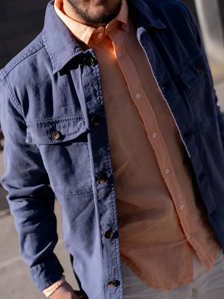 Overshirten kommer i både tykkere ullvarianter og lettere, men solide bomullsskjorter. Den er altså mer en ytterjakke enn en vanlig skjorte er. En i blått er fin til både beige chinos, ton i ton med bukser i samme nyanse eller jeans.