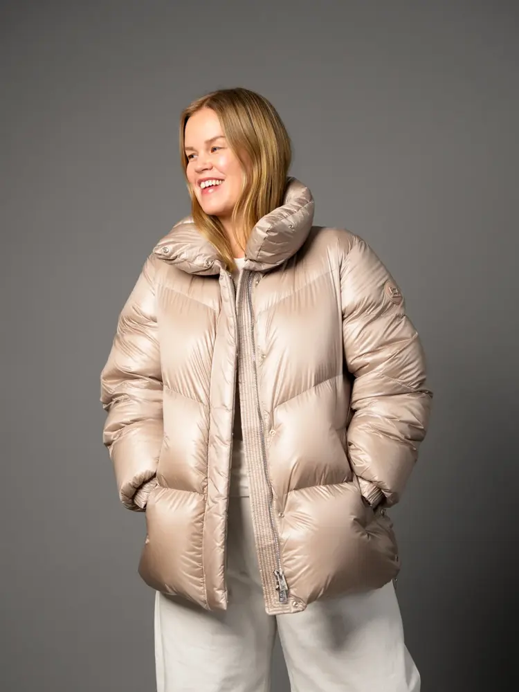 Swah: Beige dunjakke, fullpris kr 10999, nå 50% kr 5500. Høyre, Freyja: Blå jakke, fullpris kr 7195, nå på 50% kr 3597,50.