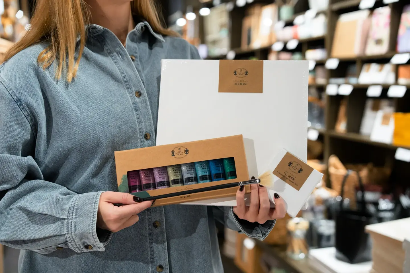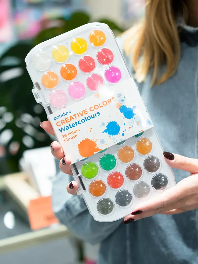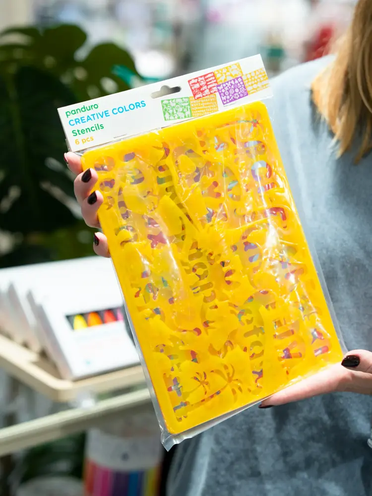 -Altså, det bugner av morsomt utstyr til kreative dager og kvelder. Akvarellfarger blir vakkert, uansett hvor god du er til å male. Stensiler er en stor hit blant de yngste barna, og et lerret kan bli til et vakkert blikkfang på veggen. Små lerret kan faktisk settes sammen til et eget kunstverk: velg 2-3 farger, og la familien slå seg løs, før dere til slutt setter lerretene sammen, tipser Elen.