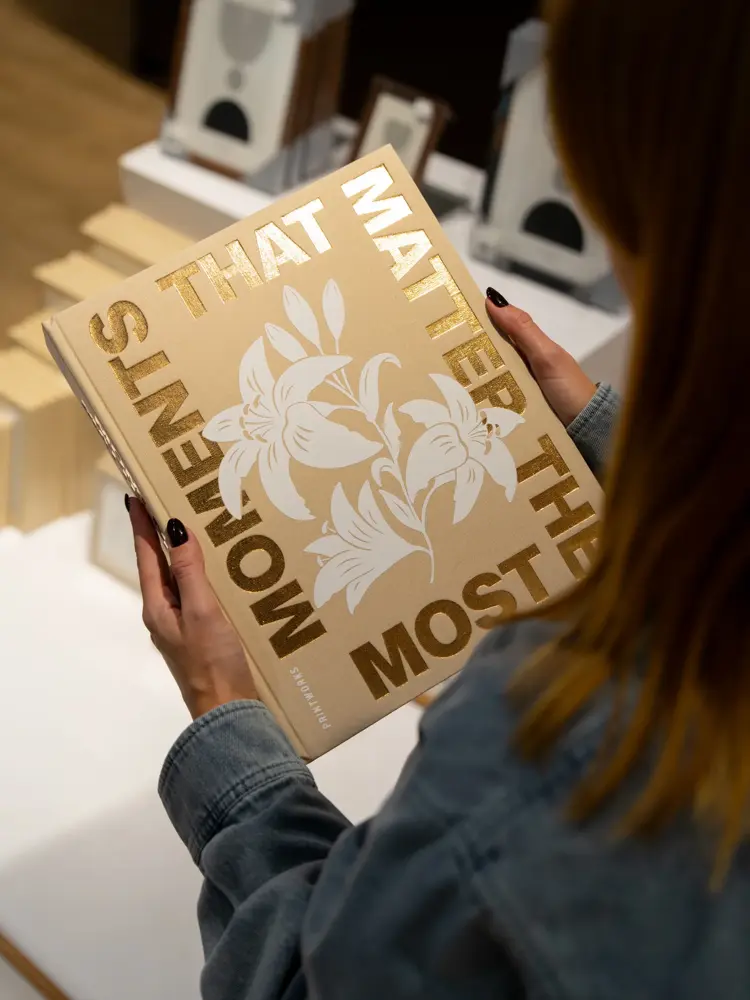 -Dette kan bli en hyggelig tradisjon. Lag en hyttebok, eller en feriebok, og lim inn bildene fra ferien, eller heng flere i en collage på veggen.