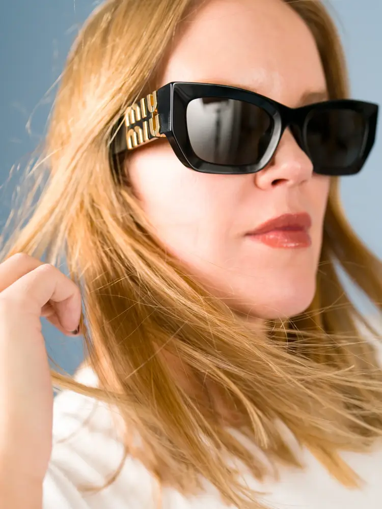 -Solbriller på nesetippen er et sikkert vårtegn, og et must i hvitkledde løyper. Optiker G Krogh har it-merket Miu Miu i sortimentet, og disse kombinerer det klassiske med mer markante linjer, sier Elen.