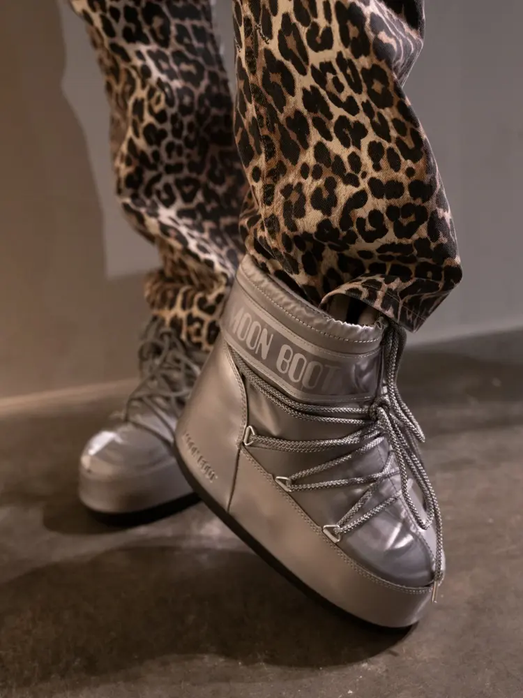 -Pysjamas dagen lang! I alle fall til langt ut på formiddagen. Og ellers er det kult med en miks av avslappet, funksjonelt og snev av stil. Moonboots kommer i alle slags regnbuens farger, og her kan du gjerne trå til på stylingen med det dyriske mønsteret leopard, en av vårens kuleste mønstre. En varmende fleece er en nødvendighet, og like fin til enkle tights som til lyseblå jeans, sier Elen.