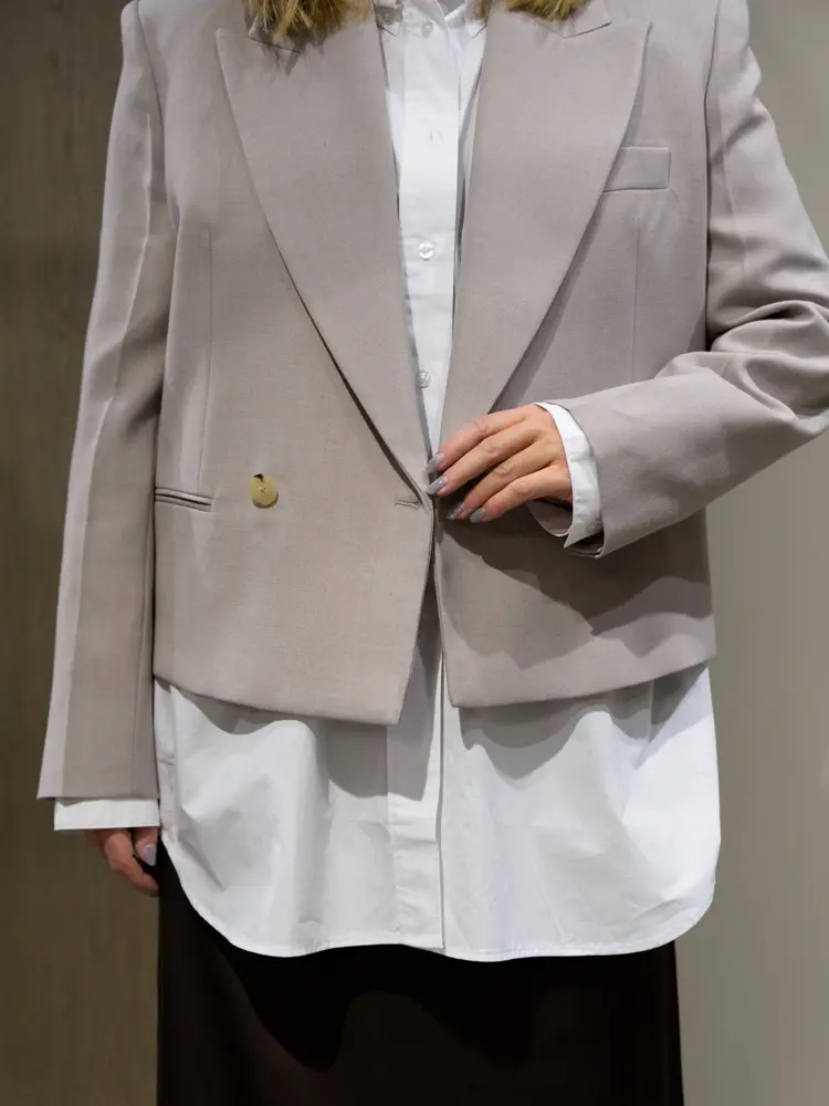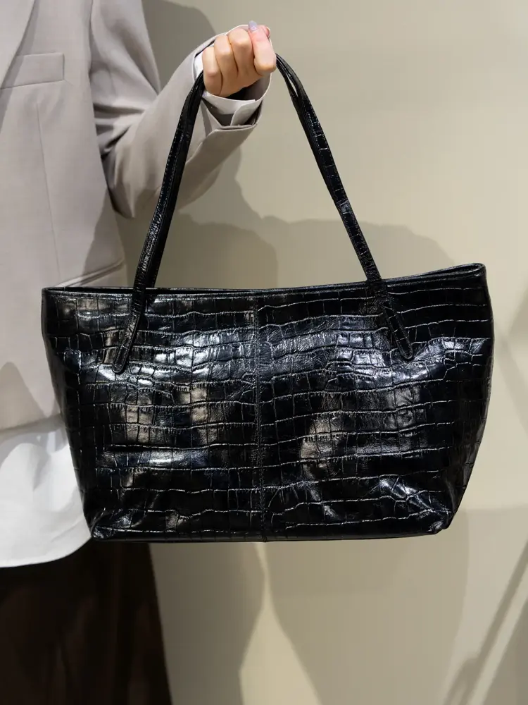 Flere nivåer i et antrekk gjør at det virker mer interessant. Den litt lange skjorten under den kortere jakken er et enkelt stylinggrep, mens det brune satengskjørtet bidrar til å understreke en jordnær fargepalett. Svarte lakkstøvletter er litt råere enn vanlige boots, og passer veldig fint til et antrekk med beige og brune toner, og lag på lag. Til jobb trenger vi en praktisk veske, og krokomønster gir tekstur til et antrekk med en duse ton-i-tonfarger.