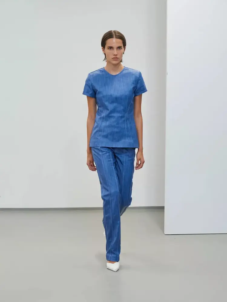 Dobbel denim er praktisk og gir dessuten et skikkelig gjennomført uttrykk. Vi elsker den vakre blå mellomtonen vi ser mest av, som hos blant andre Skall Studio og Remain, men utvaskede toner gjør seg også gjeldende. Dobbel denim er perfekt på dagene der du ikke vet hva du skal ha på deg. Det gir en helhetlig og kul stil.