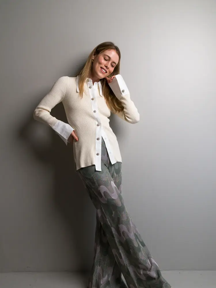 Dette antrekket er et stilsikkert bevis på Annabels stylingferdigheter. En mønstrete bukser fra Missoni hos 4Women. Resultatet er en anelse 70-tallsinspirert, men helt i tråd med dagens motebilde.