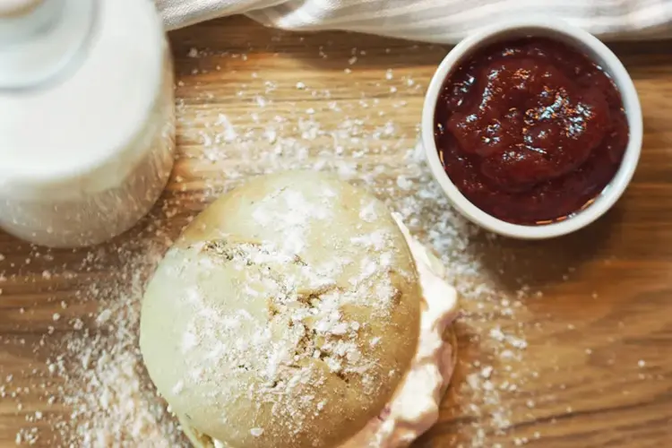 - La de avkjøle før du deler de på midten og fyller med plantekrem og syltetøy.